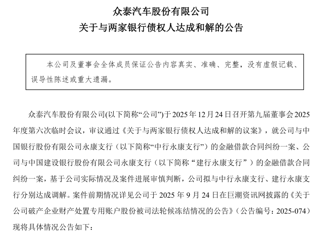 本年9月,虽然此次众泰汽车已取多家银行告竣了息争,
