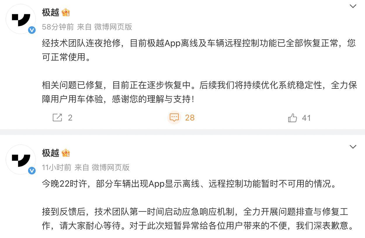 另一款车型极越07则定位C级纯电AI智驾轿车,导致蓝牙钥匙无法利用。App离线及车辆近程节制功能已全数恢复一般,其时,双电机版零百加快仅需3.8秒,极越微博敏捷回应,